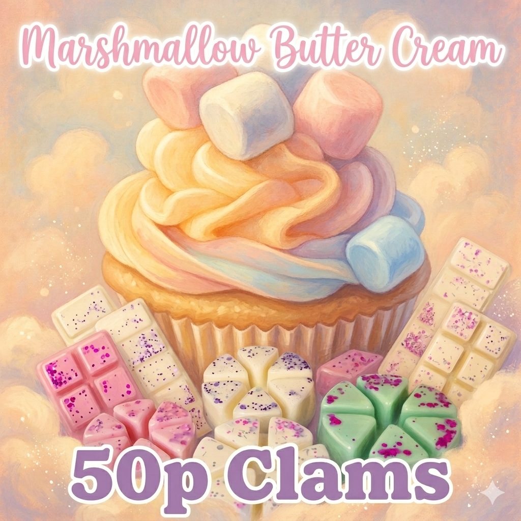 These 50p Sale clams size are selected at random you can get 40g - 90g clams. Fragrance is Marshmallow Butter Cream.